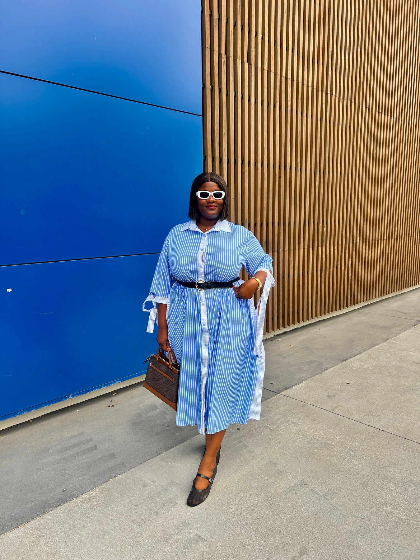 ARMELLEPLUSIZE Curve- Robe chemise courte en manche froufrou- jean